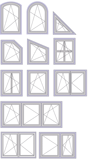 Custom architectural shapes include half rounds, extended half rounds, extended segmental, eyebrows, quarter rounds, rounds, octagons, extended octagons, ovals, elliptical, triangles, pentoids and trapezoids.